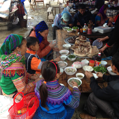 The market is held only on Sunday morning,offering local products, as well as daily necessities, for sale or barter and it is always very crowed. Due to the fact that communities in Sapa are sparsely populated, people living in far-away villages have to travel from Saturday to be able to join the market on Sunday. They arrive at the town on Saturday evening, and take a rest.